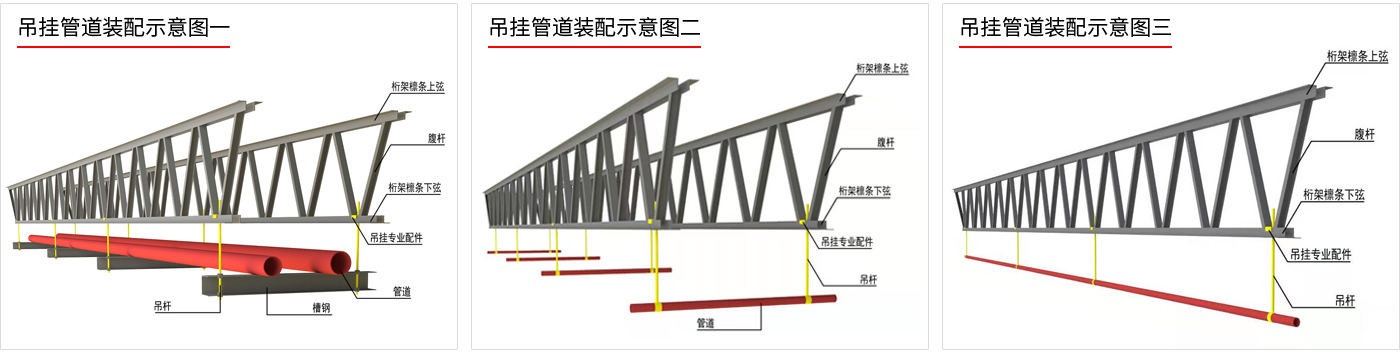 對于主管線吊掛情況,采用皮特森鋼桁架檁條的特殊懸掛系統(tǒng),可節(jié)約48%的用鋼量; |